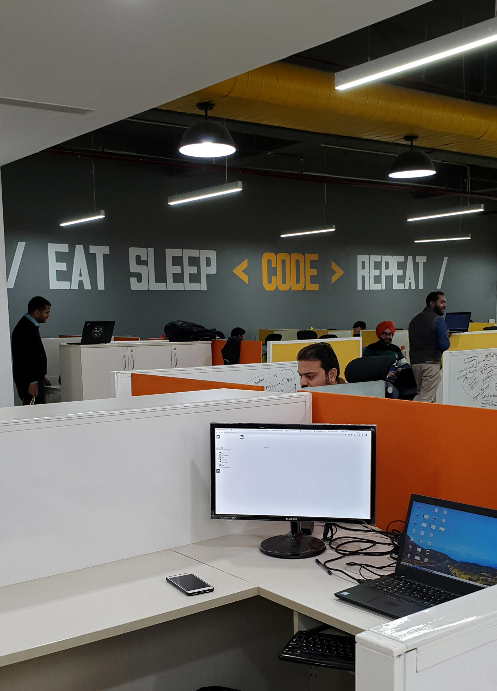 The open, transparent and ‘cool’ culture of this IT company itself became the inspiration for its office space design concepts. “Don’t be afraid of colour” was a feedback from the client that became our design mantra for this project. We were encouraged to think out of the box and play around with new ideas. Budget and timeline being the big constraints in this project, pushed us to play around with simple concepts like graffiti, paint and material colours.