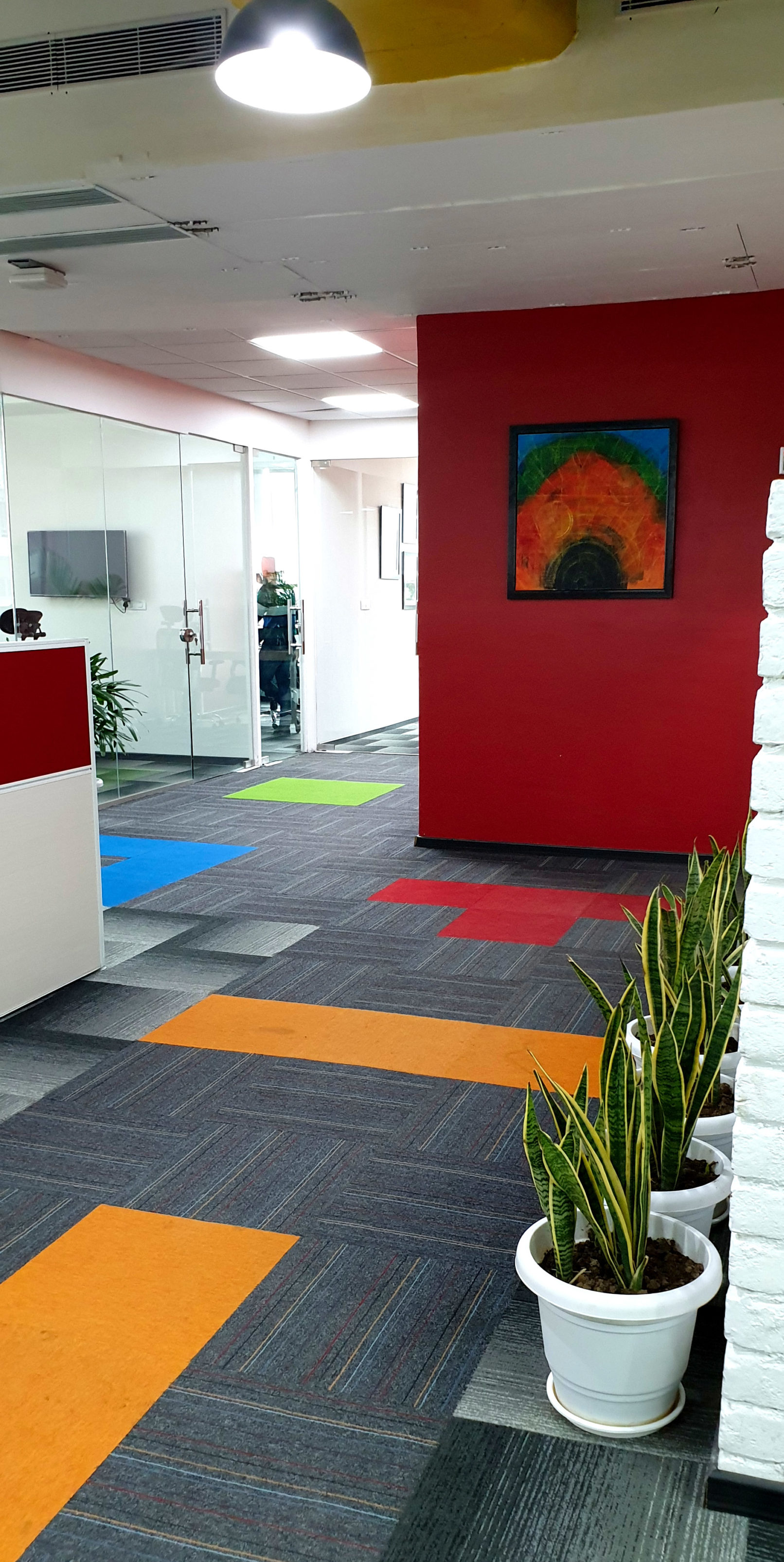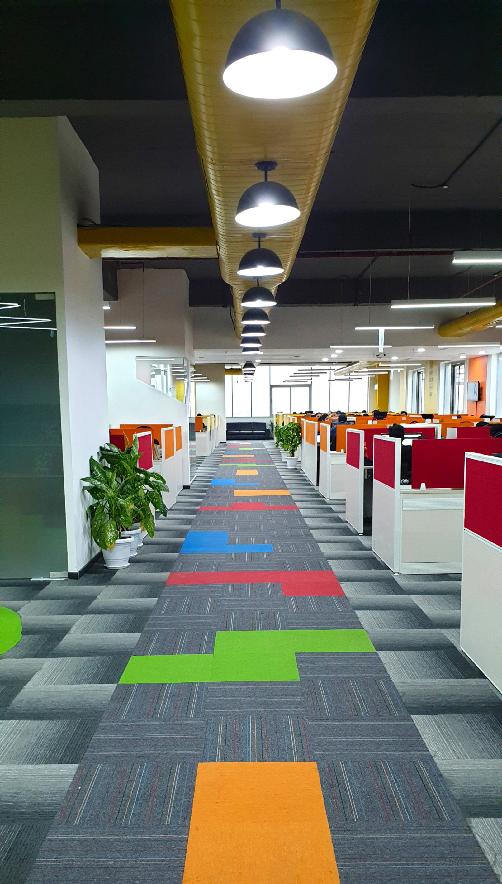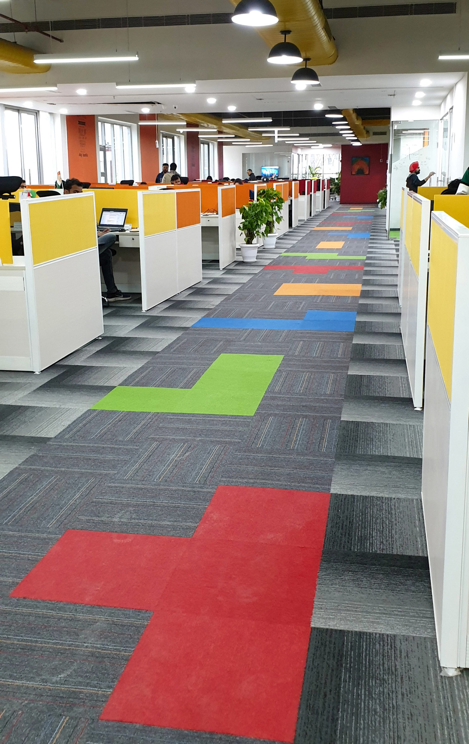 We noticed the geek-gamer culture of the company and came up with the ‘TETRIS’ pattern in the carpet tiles. These patterns remind you to add ‘fun’ in the otherwise serious office environment. The colours of the tetris blocks helped integrate the entire office.